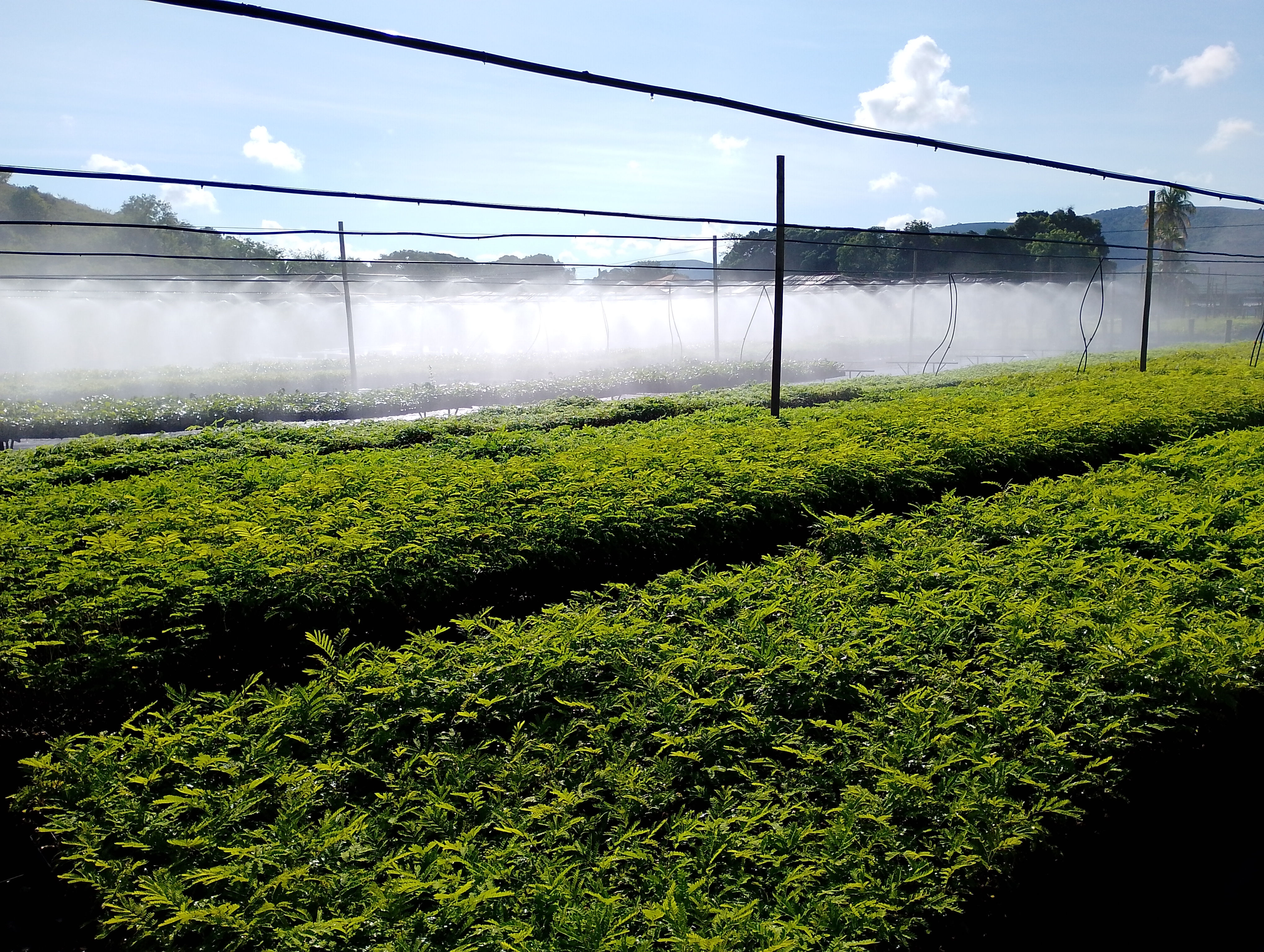 No que diz respeito à nutrição, o Viveiro AGR utiliza sistema de fertirrigação por barra, que permite a aplicação de fertilizantes solúveis diretamente na estrutura foliar da muda, de forma uniforme e controlada. Esse método promove maior vigor e uniformidade no crescimento das plantas, reduz perdas por lixiviação e contribui para a formação de mudas mais saudáveis, com melhor desempenho após o plantio.