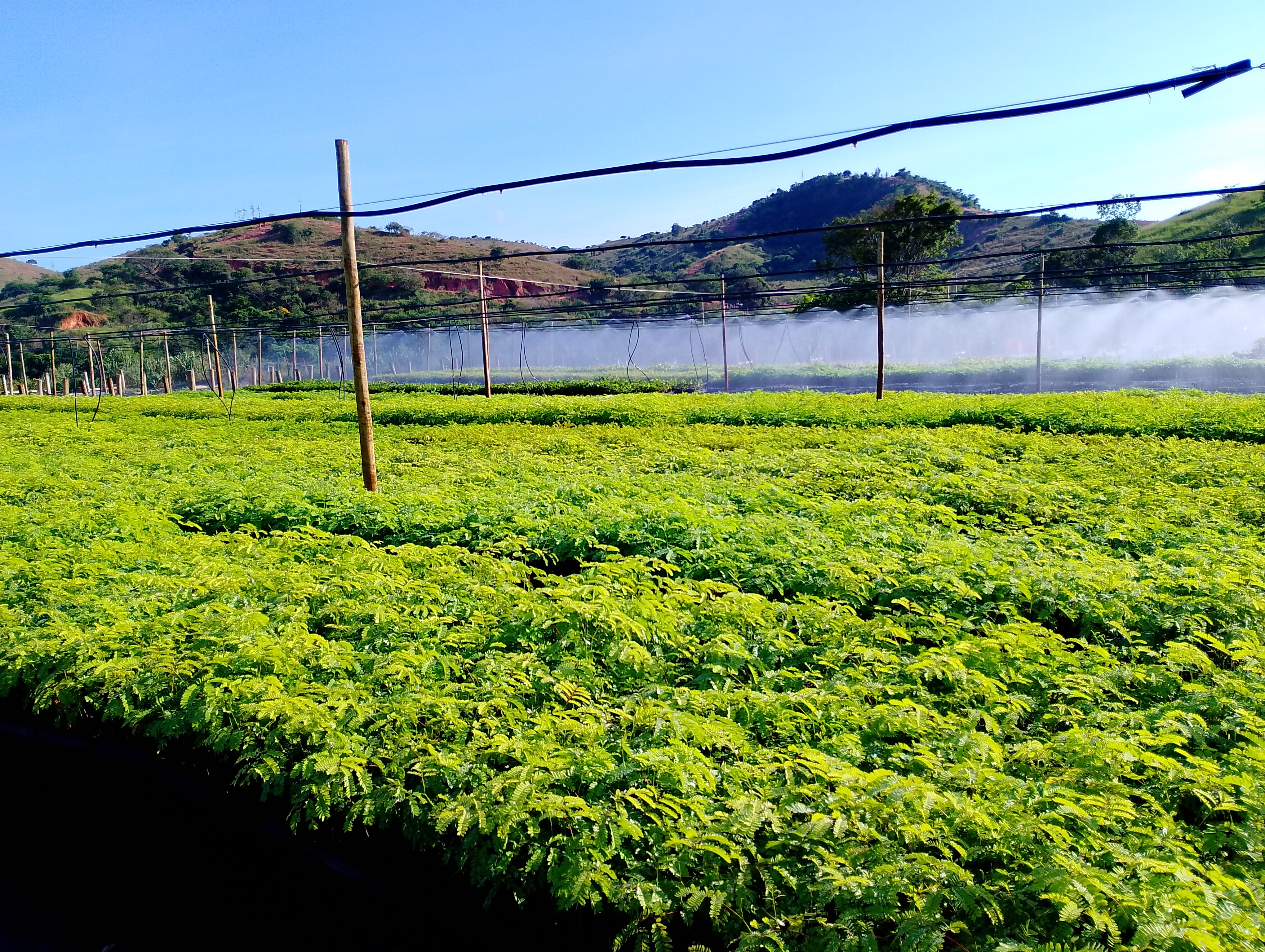 No que diz respeito à nutrição, o Viveiro AGR utiliza sistema de fertirrigação por barra, que permite a aplicação de fertilizantes solúveis diretamente na estrutura foliar da muda, de forma uniforme e controlada. Esse método promove maior vigor e uniformidade no crescimento das plantas, reduz perdas por lixiviação e contribui para a formação de mudas mais saudáveis, com melhor desempenho após o plantio.