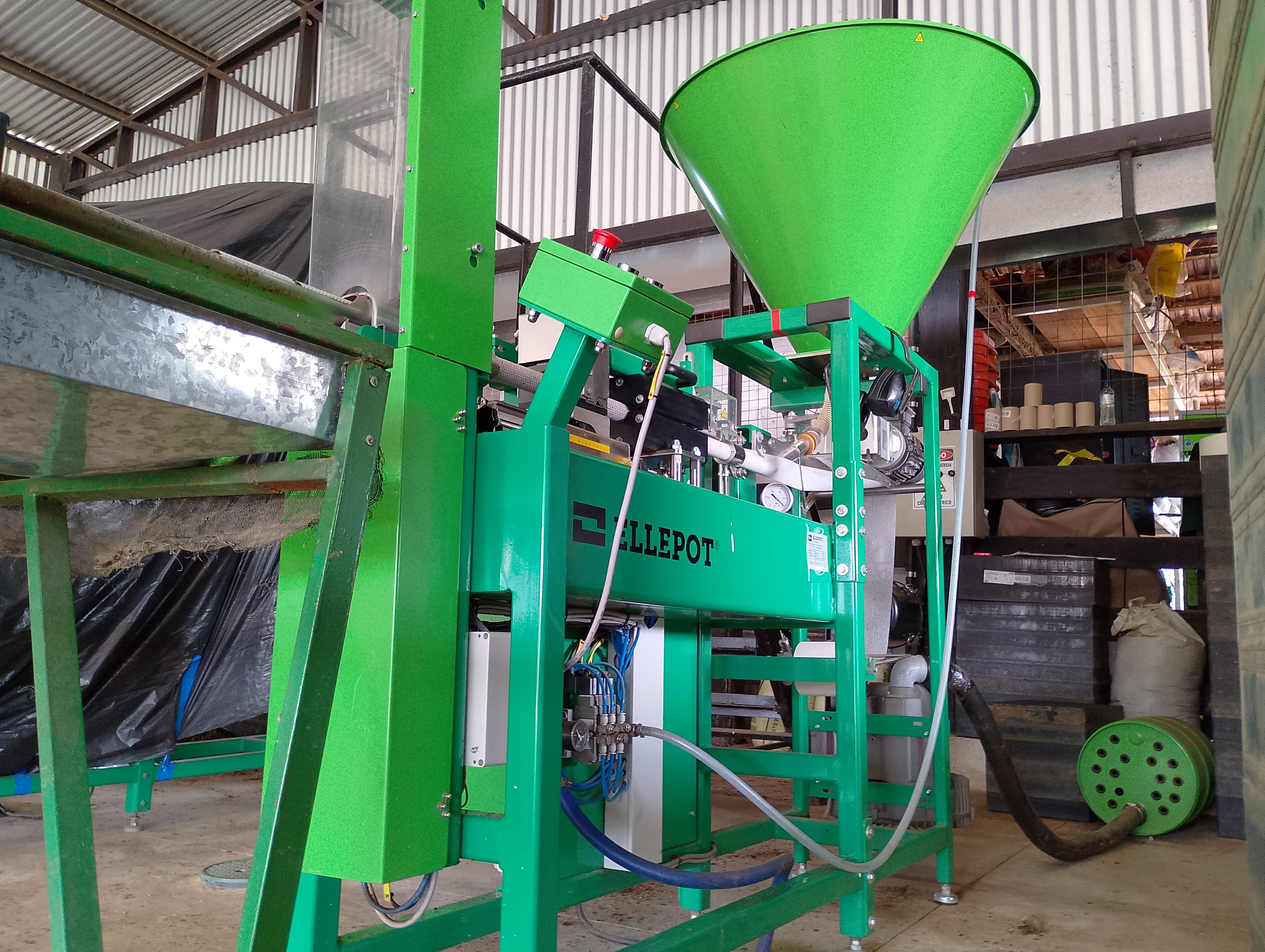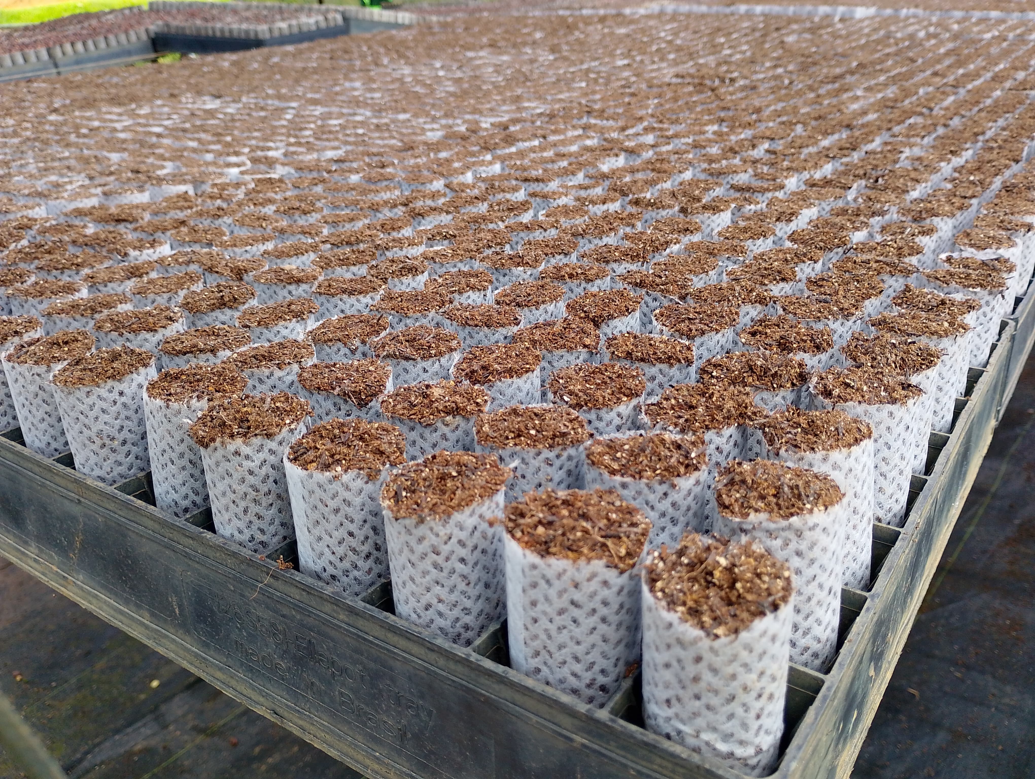Uma das principais inovações é o sistema Ellepot – Paper Pot Biodegradável, desenvolvido para substituir os tubetes plásticos tradicionais. Produzidos com papel certificado FSC® e materiais naturais, os Paper Pots são recipientes biodegradáveis para o plantio das mudas. Esse sistema favorece o desenvolvimento radicular, reduzindo o enovelamento das raízes e facilitando a absorção de água e nutrientes. Por serem plantados diretamente no solo, minimizam o estresse de transplante e aumentam a taxa de sobrevivência em campo. Além disso, eliminam o uso de plásticos descartáveis, contribuindo para a redução de resíduos e impactos ambientais.